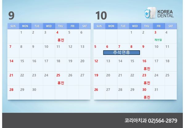 Á¦¸ñ | ÄÚ¸®¾ÆÄ¡°ú 2025³âµµ 09, 10¿ù ÈÞÁøÀÏ ¾È³» |